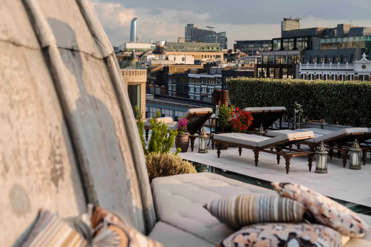 Knotel oversees the co-working spaces, 23 rooms in all, including the rooftop lounge with its infinity pool, breathtaking views of the London skyline, and built-in sofa seating surrounding its iconic Pantheon-inspired dome. They also manage a portfolio of over a million square feet of other curated workplaces world-wide, so plenty to keep the Head of Design for Knotel, Emily Nokes, busy.